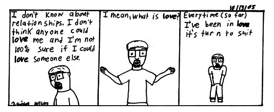 Quite frankly I'm now worried that I'm just rambiling, to make sense out of what I just put up. Also that this comic might effect any chance for future relationships.