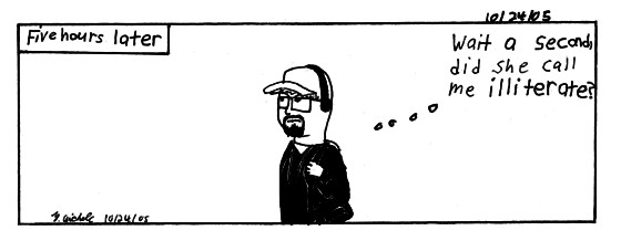 Ever since I’ve started doing comics sometimes I always challenge the concept of what people find funny. Especially with this comic. Cause I have to balance personal with the universally. That’s what I was hoping with this comic. To tell something only one or two people will get, but everyone else will still think is funny. Sometimes also it’s just funny too me. Hopefully that’s good. Well goodnight.