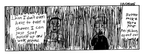 I swear this actually happened. The dialouge and what the guy looked like is a little off. Otherwise a guy came up too me and said something similar to that. I guess I just bring it out in people. I just bring out the weirdness in people. I'M FINISHED. I got the final cut on my book. So now it's all set up. Tomorrow I'll see Allan to take off the extra paper. I took some photos, but I'll post them tomorrow. I'm also thinking of starting to take pre-orders for the book. If I get any orders it be to pay to make the book. I might also make a few more of the one I'm going to put in the show for a lucky few. Soon as I get more details I shall let you all know. Bye guys, take care. |