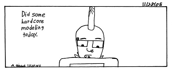 It was fun sitting in the animation lab while a movie was playing, working on my models. Wooo, computer animation.