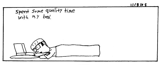 I went over thursday to go to class and work. My friends were throwing a party for their organization RASA. I helped set up Jay as the DJ, and just hung around there. I went to a party and stayed at a friends house and got to bed around 4 am.