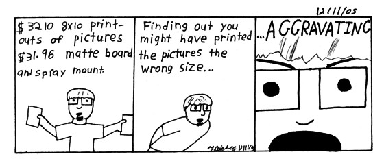 Worked on my digital photo final all day. So two classes down. Two and half more to go (just have to turn in my video for video and film).