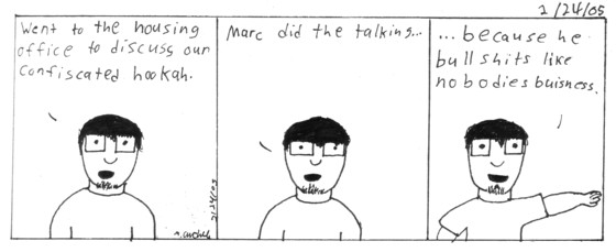 During the fire they found our hookah, which was used to smoke tobacco. Luckly all we had to do is take it home. Marc didn't really do to much. Well I hope you enjoyed youir snow day. Later.