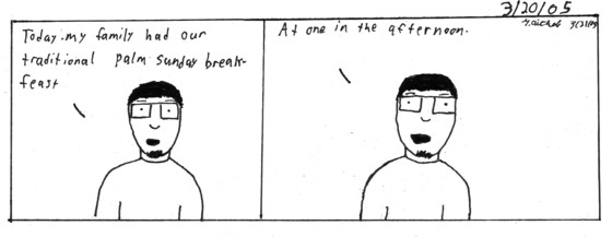 The Palm Sunday breakfeast is one of the few traditions my family still has. It's when the beltran family get's togther at the Penrose diner. Which is my Mom's parents (grandma and grandpa) and her brother (Uncle Riki) and his family (Aunt Viki, Richard the third, Lynn and Heather). Tiff got invited and she came too. The reason for it being in the afternoon was because the sunday services at Old Swedes doesn't get out till 12:30. Our old chrunch (which is now an Italian resturant) got out early. Ironically my grandpa said as we were leaving "We better go before it's lunch time." However it was already past two.