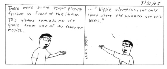 Well today's strip is interactive. If you guess what movie the quote is from, I will draw a personal artwork for you. So, go to it.