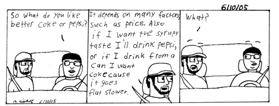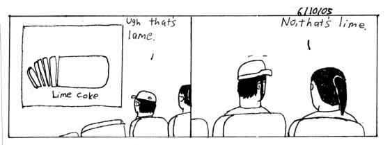 Me and Kelly went to see Mr. and Ms. Smith. Angelina Jolie was amazingly hot in the movie, just very nice. It was an interesting people solve their maretial problems while killing people. It was funny worth seeing I think. Comic 1