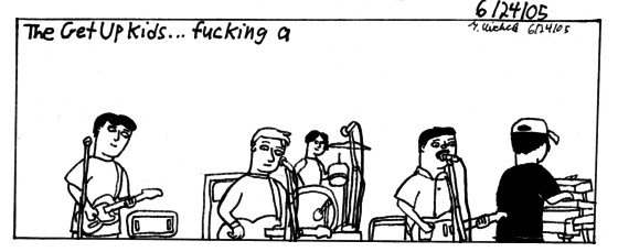 The show was awesome. The open bands Joshua something or other and French Kicks. French Kicks set seem to go on and on towards the end. Then The Get Up Kids. I was so excited. I was excited about Reggie, I'm such a girl...tehehe. Not really, but James is awesome. Oh yea the rest of the guy's were awesome. Nah I kid I kid. I feel sad that I can't ever see them again. I hope they will return someday, hopefully they won't charge $50 when they do. P.S. They didn't play Last Place you look =^(.