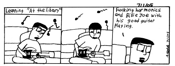 There's one part of the song where Billie hit's harmonics really fast. So far I haven't hit the whole thing, but I'm working on it. I think my guitar's action is a little to low to do it, but I don't really know that type of thing. Yea learning most green day songs are easy. Some are hard. Then again I've always had trouble learning overly complecated lead parts.