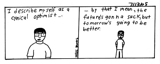 The way I see it. Cynics see the world in a very wide scope, Optimist see more narrowly.