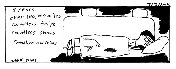 Sunday after one last trip to Q-mart we left for home. I took Dave and Joe while Mom took Frank, Jeanine and Big Guy. I soon recieved a phone call full of terrible news. Then van finally up and died. I've said before of the problems it had, well it finally decided enough is enough. Grandpa had to come with his car to drag to a spot where it can be towed. |