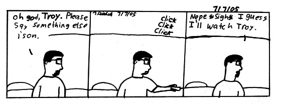 Netflix has been screwing me lately. According to them I should have two new movies today. BULLSHIT. So I'll be getting them tomorrow. They have been doing that for a couple of weeks. If they keep this up. I'll have to bitch on here more. Also Say Anything(the band not the movie) are screwing me. They canceled their show on saturday. BAH. So yea. I'm still on the main page on bolt journals. Weird. It's not that I have anything against the movie. I just rather watch something else.