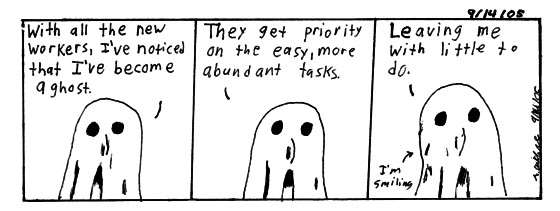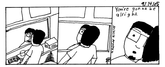 Comic 1 I actually thought of the "man" comic yesturday at 11, but didn't get it done till today. I think I don't get deep comics done sometimes cause I get conflicted about em, I don't write the idea down, or I just decide not to deal with it and go with a fuinnier one.Comic 2 The, downside to not having a lot to do, I stand around doing nothing and I get really bored. Hopefully I can get to a computer. Towards the end I got soooo tired.