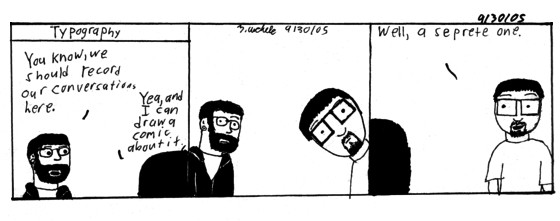 I'm really proud of the expressions in the second panel. It's just funny to me. I love the looking into the camera at certain points to highlight the irony.