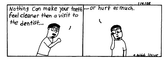 I went to the dentist today. Bad news is I got lot's of work to get done. Good news is that I think I don't have any new cavities. A record. Then I just sat around me house. But I'm going to D & B later.