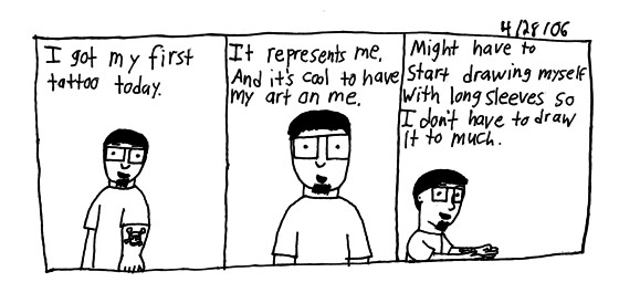 Yup I'm sure your all shocked I would get a tattoo. Well I did and it is awesome. It's my take on the skull and crossbones, it's very cartoony and dorky, just like me, hehe. The guy who did it was Doc. He wanted to add shading and such, but I didn't want any of that. It works as it is, and if I want more I'll get it later. Man did it hurt, I was tense too so I guess that is why. I didn't cry, I just sucked my teeth and grunted when it really started to hurt. It still stings right now, but hey that's the price for an awesome tattoo. Much thanks to Doc.