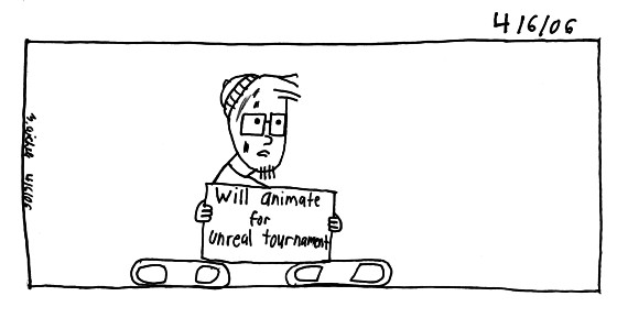 The old school animators gave everybody Unreal tournament. So we keep playing lan games. Of course being relatively new to it, WE GOT BEAT LIKE A TWO DOLLAR WHORE. But I got a lot of kills. I figure it's a right of passage of sorts, next to actually making animations. HAHA.