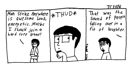 7/7/06 "He listens to a few Strike Anywhere songs he thinks he's hardcore"
