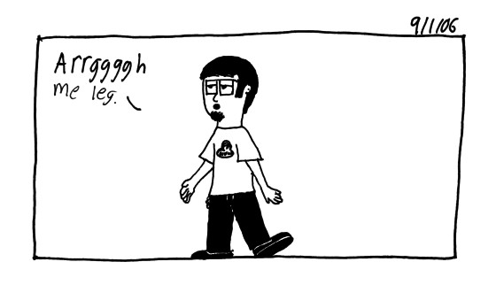 9/1/06 "Peg leg, hurt leg same thing"