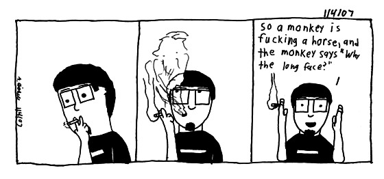 It's a joke I usually say when there is just dead air during conversation. It's like that "rectum damn near killed em." Haha, also it's a take on that horse walking into a bar joke haha. But I love the comedian like, shotgun delievery.