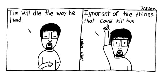 Thanks to Theresa who texted me what I said so I could do today's comic. Truth be told I was drinking from a chipped glass when I said that.