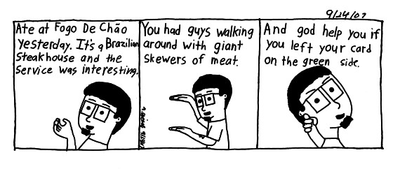 The green card thing. They had these coaster things that had a green and red side. If you had the green side up they'd bring you meat until you flip the card. After a while it became a strategy to get the person you wanted to come over.