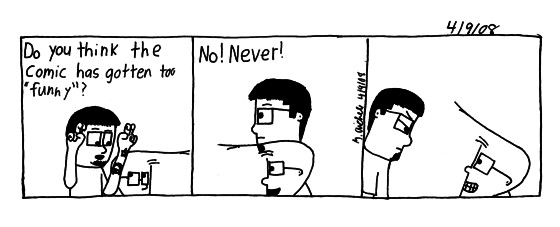 I think I've just been focusing too much on doing jokes. Which I feel was never what this comic was about. It was about how I feel. I guess awhile ago I tried to deal with stuff that was bothering me by just making a joke out of it. It worked for awhile, but it sorta evolved into just writing funny comics with a sort of depressed edge. I really don't want this comic to be about telling jokes for the sake of it being funny. I just want my megaphone back(as the title states). So let's relive the good old days of depressing, funny and insightful comics about my life shall we?