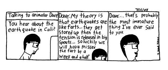 After Dave said the last bit, I returned with "And that's saying something." But the more I think about it, he doesn't really do juvenil humor. Unless he's doing a short or something haha. Schoooooooooo.