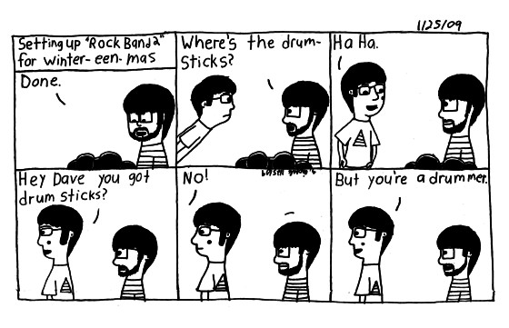 As for the comic the title explains the rest of the story. I played with the handles so I wouldn't cut Fitz's drums. Luckily they were just butter knives so I was fine. And it comforted me that someone else played drums with the knifes too.