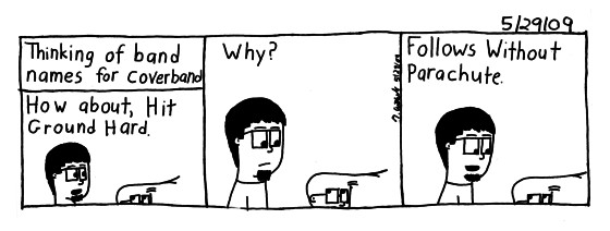 I didn't mention yesterday, but the new band I'm in contains 3/4 of Without Parachute. The addition's are me and the drummer's girlfriend who sings.