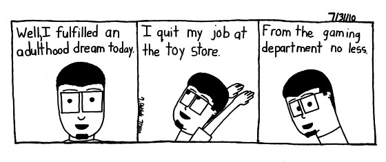 In case you forgot, this comic is a throwback to this comic. A nice progession to the excitment of getting the job to the excitment of quitting.