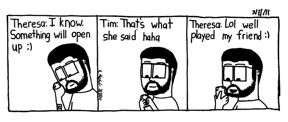 "We went to the Philly Pizza Company. And ordered some hot tea. The waitress said well no, we only have it iced. So we jumped up on the table and shouted anarchy."