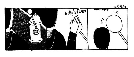 Yea on my way back from the train station to the house I'm staying at, I see that fire hydrant. So as a joke I high five it.