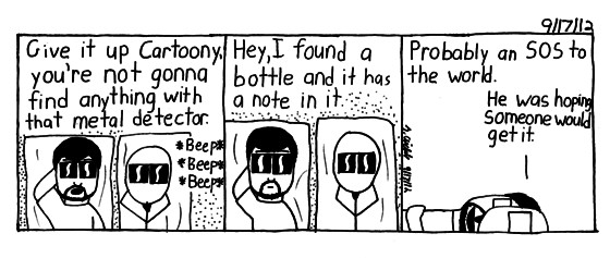 "Walked out this morning. Don't believe what I saw. A hundred billion bottles. Washed up on the shore. Seems I'm not alone at being alone. A hundred billion castaways. Looking for a home."