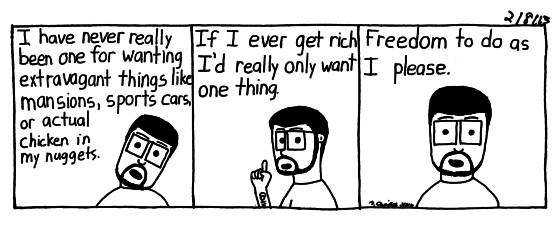 When I say freedom to do as I please, I mean, going out to eat, work on projects, maybe go on an actual vacation. The things money can buy haha.