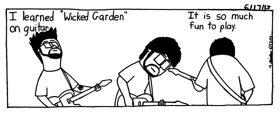 Listen to it here. It was surprisingly simple to play. Gotta love a good guitar player who can write simply stuff that is awesome.