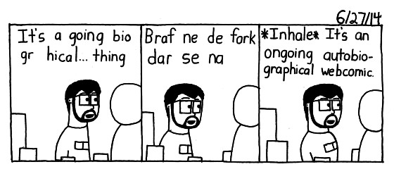 A few friends of mine showed me this awesome comic about conventions. It mentioned I should have a pitch, a basic outline of what my comic is about. Unfortunately there were a couple times it was hard to get it all out coherently to a person who probably couldn't hear me.