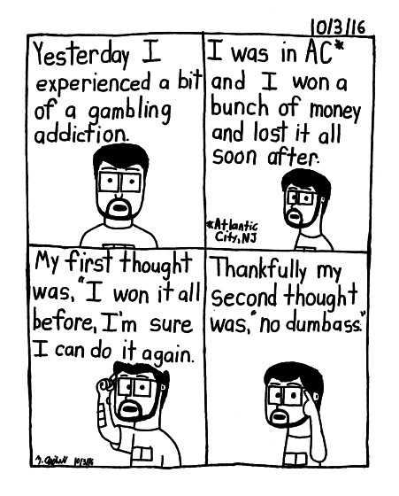 Though today I did gamble a bit before I left and I won some money again. Difference is, that I quit while I was ahead.