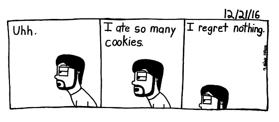 I brought my usual Christmas cookies to the office and another coworker brought some too. So I ate a lot of cookies.
