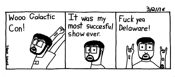 Galactic Con was amazing. My only gripe is the lack of more then one men's bathroom on the first day. Otherwise a good con. Everybody loved my new Star Lord print(sadly few takers) and I had a few commissions. Also did an interview with podcast Geeks & Ghosts. So far it's been a successful year for my cons. And I hope that trend continues!