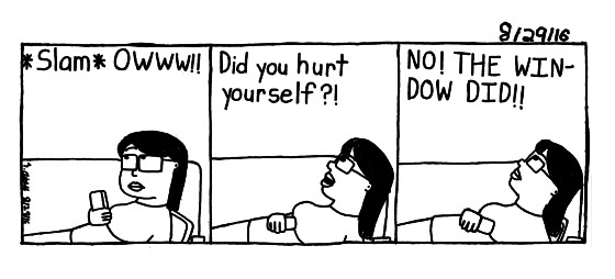Was replacing an air conditioner, and the window dropped on my hand. Didn't break, but it hurt.