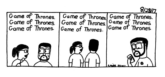 Abigail is on a seemingly never ending quest to make me watch Game of Thrones. The more I say no, the more she tries to make me watch it and the more she tries to make me watch it the less I watch to watch it. So in the end it's a battle of wills. Though I do want her to knock it off. Hoping that since the season finally happened yesterday she'll leave me alone for awhile.