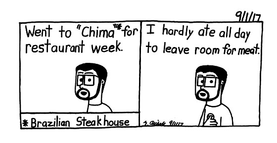 "Saw you at the buffet. Lunch is best time of day. You are big and I'm small. You're as wide as I'm tall."