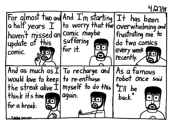 Between writing and drawing two comics it's been hard. So I've decided I earned a holiday. Since I have no shows this month I decided to take May off. But Shawn, Frank, and Mary still have two weeks left. So if you want your dose of Tim work check out the wrap up over there. See you all monday.