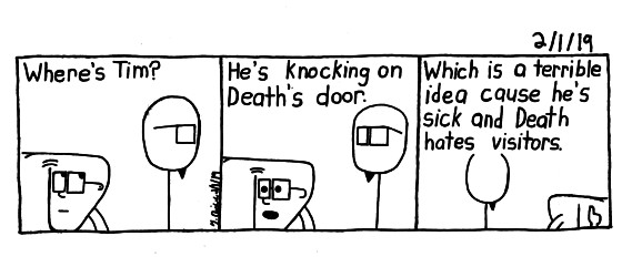 I've been sick. It's been a rough couple of days. Been laying down for most of it. I'm getting better but I hope to be at regular strength by Monday.