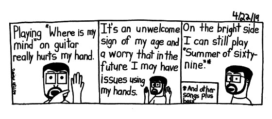 It's basically barre chords that I have problems with, open and power seem to be okay. And I can rock the bass still. Just worried when the day comes that will not be true.