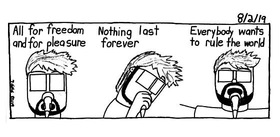 "It's my own desire. It's my own remorse. Help me to decide. Help me make the most Of freedom and of pleasure. Nothing ever lasts forever. Everybody wants to rule the world."