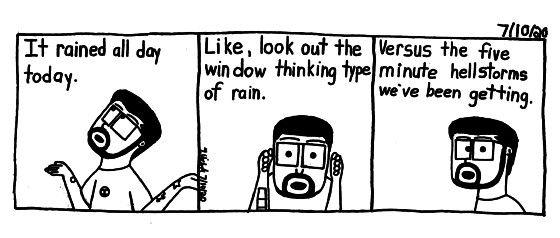 "The neighbors said she moved away. Funny how it rained all day. I didn't think much of it then. But it's starting to all make sense. Oh, I can see now that all of these clouds. Are following me in my desperate endeavor. To find my whoever, wherever she may be" (Remembering Sunday, All Time Low)