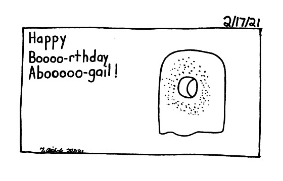 2/17/21 "Ghost Bagel Says Happy Birthday Abigail"