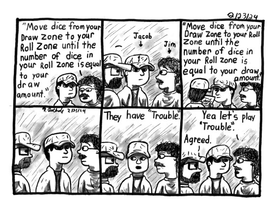No offense to the creators of Cubitos, but we were very confused and it took like 10 min to figure out to just set it up. But fun was had with Trouble and even Sorry at Thirsty Dice.