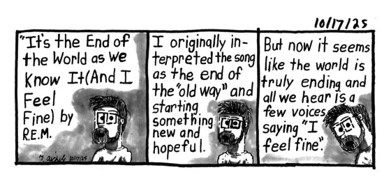 (It's The End Of The World As We Know It (And I Feel Fine), R.E.M.)